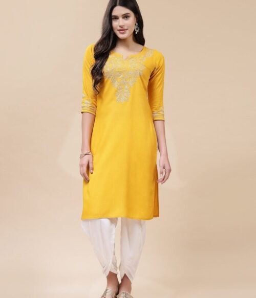 Mustard Yellow Resham Work Short Kurti