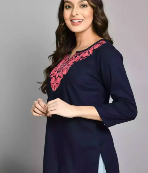 Blue Kashmiri Embroidered Short Kurti