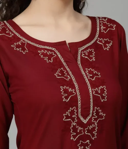 Wine Silk Embroidered Kashmiri Kurti