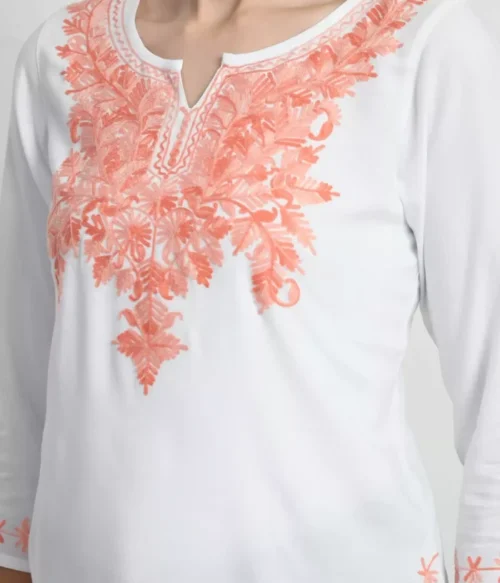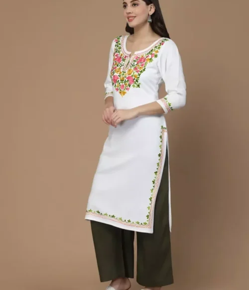 White Kashmiri Embroidered Short Kurti