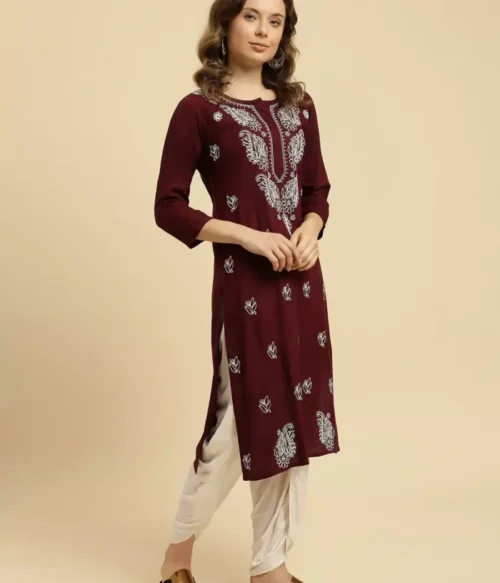 Wine Chikankari Kurti