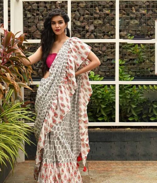 Paisley Print Saree with Ruffles