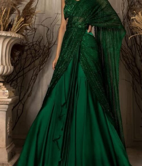 Women’s frill ruffle ready to wear saree for wedding mehandi party diwali haldi reception navratra gift.