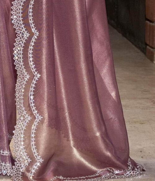 Women’s Beige Organza Crushed Siroski Work Embellished Border Saree With Unstitched Blouse