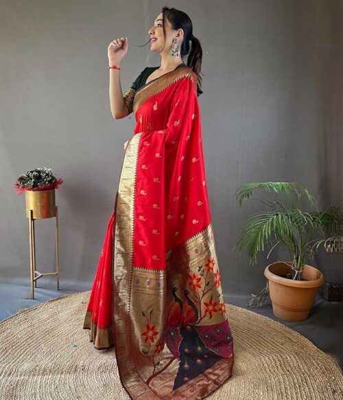 Women’s Paithani Silk Saree With Blouse Piece