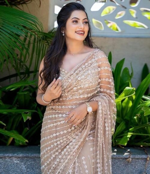Saree For Women’s And Girls Net Fabric Saree With Fancy Sequance Embroidery Work With Feather Lace In Pallu
