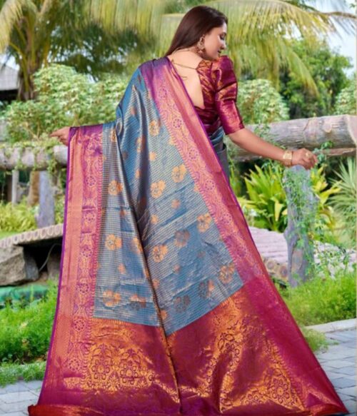 ₹3,859.00Original price was: ₹3,859.00.₹3,009.00Current price is: ₹3,009.00.Add to cartProduct Details Blouse piece length: 0.8 m Classic Saree length: 5.5 m Package contains: 1 saree with blouse piece The last image gives a detailed look of the blouse piece that comes with this saree (The blouse in the images is only for styling purpose) Dry clean Silk