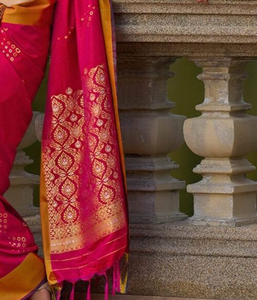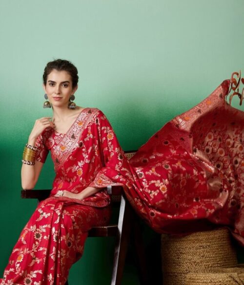 ₹3,879.00Original price was: ₹3,879.00.₹2,509.00Current price is: ₹2,509.00.Add to cartProduct Details “Disclaimer : The saree comes with an unstitched blouse piece ,Check the image of the blouse piece in Front image for understand how the actual blouse piece looks like.” & “Note: Minor variation in colour is possible due to display device setting.” Print & Pattern :- Ethnic Motif, Work Deatils :- Woven, Occasion :- Traditional/Festive, Type :- Banarasi Banarasi This saree from the house of Ri-wah is made from Silk . Ri-wah Saree With Blouse Piece, Which can be Stitched according to Your Taste and Preference. This Saree is Crafted by Skill Craftsmen without Compromising on its Quality. With This Beautiful Design and Fabric, This Saree will fetch You Oodles of Compliments and Praise. saree fit size is 5.5 mtr saree & 0.8 mtr blouse, Free Size |. 5.5 mtr saree & 0.8 mtr blouse, Free Size Blouse piece length: 0.8 M Saree length: 5.5 m Package contains: 1 saree with blouse piece The last image gives a detailed look of the blouse piece that comes with this saree (The blouse in the images is only for styling purpose) Dry clean Silk