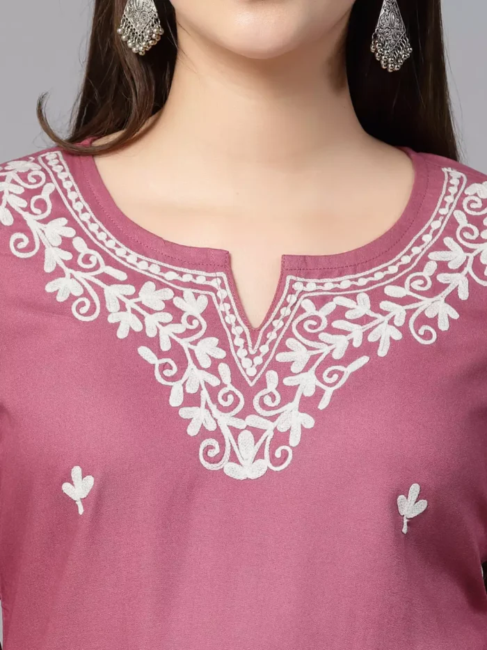 Aiza Kashmiri Pink Short Kurti