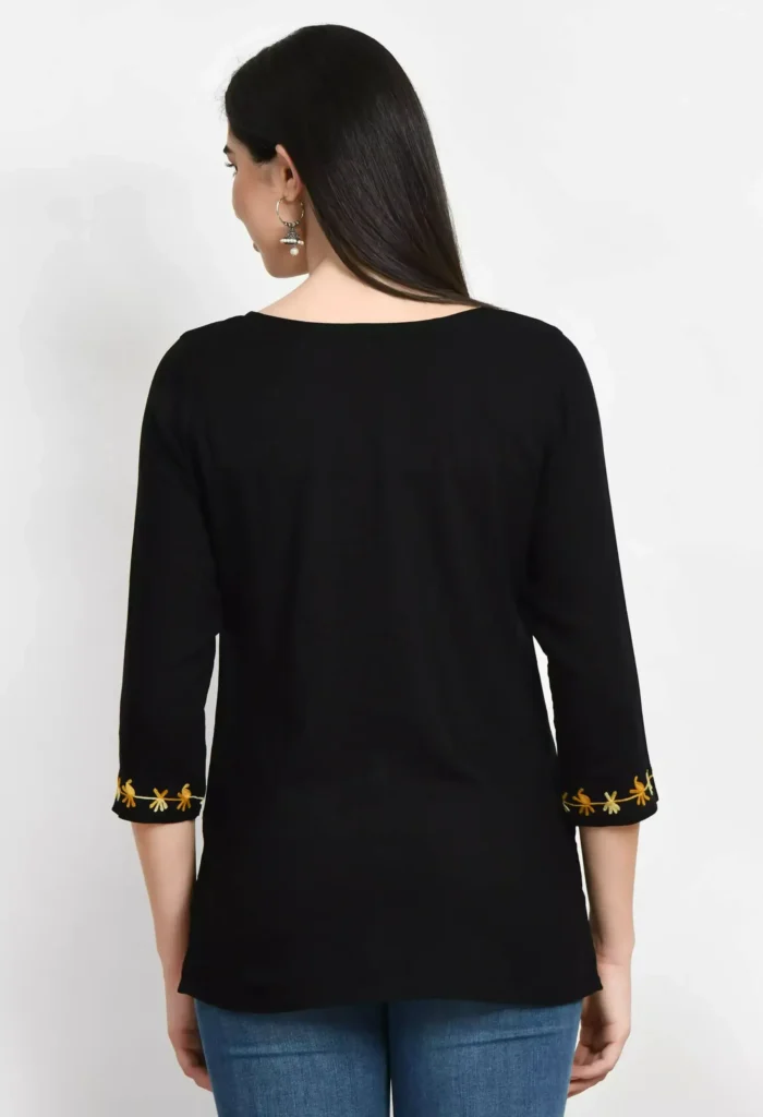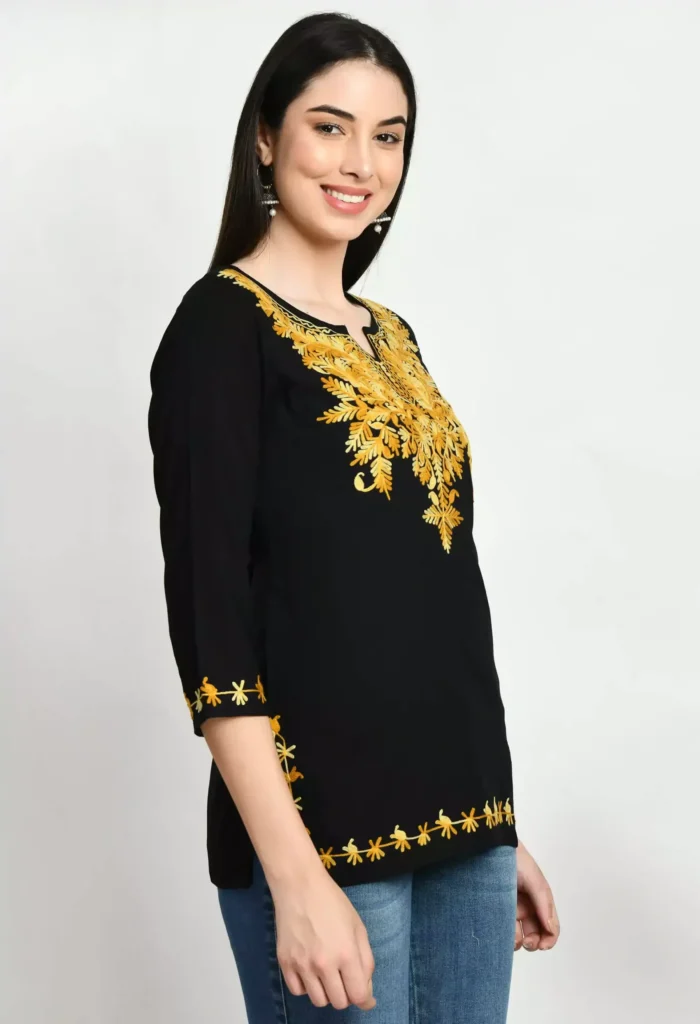 Black Kashmiri Embroidered Short Kurti