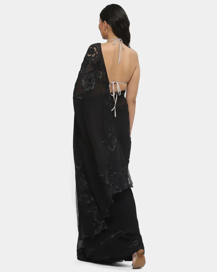 Product Details Blouse length: 1 m Saree length: 5.5 m Package contains: 1 saree, 1 blouse piece The last image gives a detailed look of the blouse piece that comes with this saree (The blouse in the images is only for styling purpose) Dry clean Silk georgette