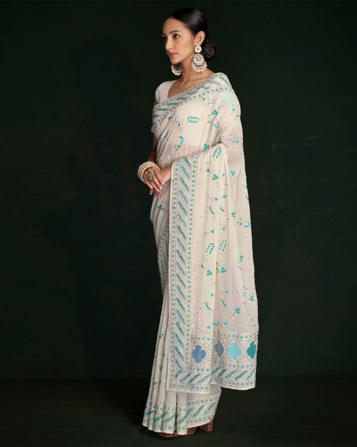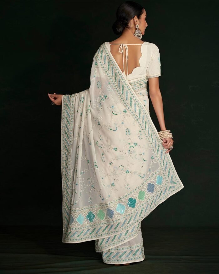 Product Details We recommend you buy a size larger Blouse piece length: 0.8 m Saree length: 5.35 m Package contains: 1 saree with blouse piece The last image gives a detailed look of the blouse piece that comes with this saree (The model is wearing a blouse from our in-house wardrobe) Dry clean Georgette