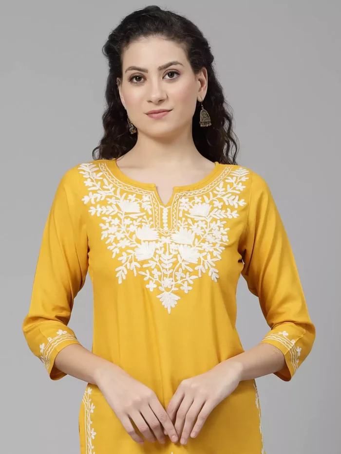 Mustard Kashmiri Short Kurti