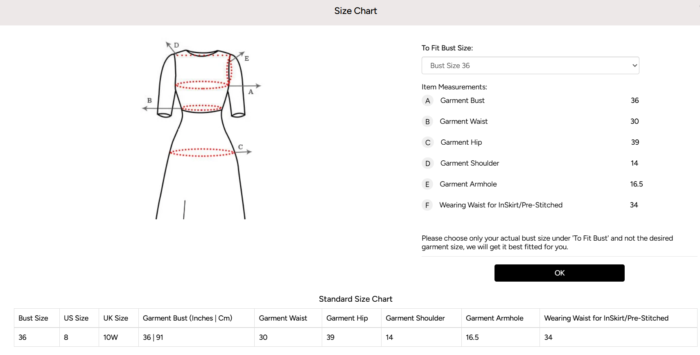 Made to Measure means a customer can get the Sari stitched based on the full body measurements provided by the customer. in someSarees, Made to Measure allows customers to change the neck, sleeve and top styles.