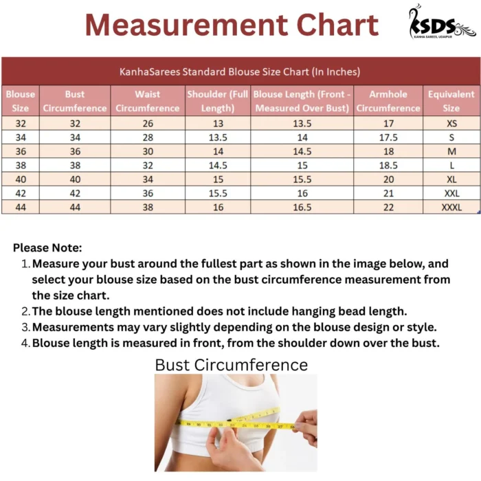 Size Bust (inches) Waist (inches) Hip (inches) XS 32 - 33 24 - 25 34 - 35 S 34 - 35 26 - 27 36 - 37 M 36 - 37 28 - 29 38 - 39 L 38 - 40 30 - 32 40 - 42 XL 41 - 43 33 - 35 43 - 45 XXL 44 - 46 36 - 38 46 - 48 3XL 47 - 49 39 - 41 49 - 51 4XL 50 - 52 42 - 44 52 - 54 5XL 53 - 55 45 - 47 55 - 57 6XL 56 - 58 48 - 50 58 - 60 All measurements are in inches and may vary slightly.