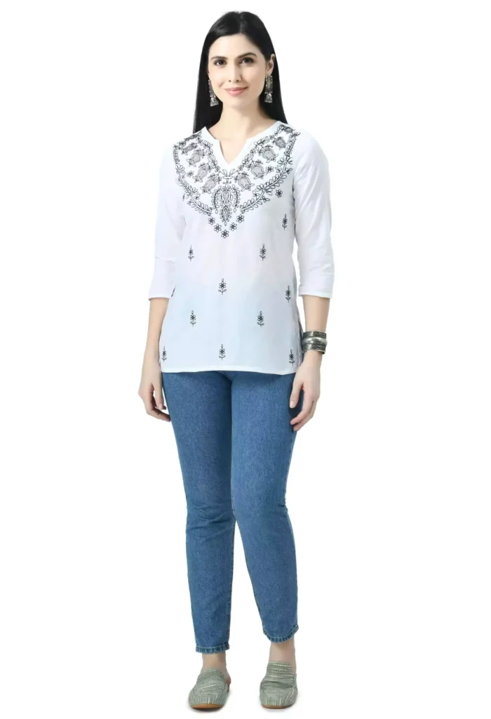 White Chikankari Short Kurti