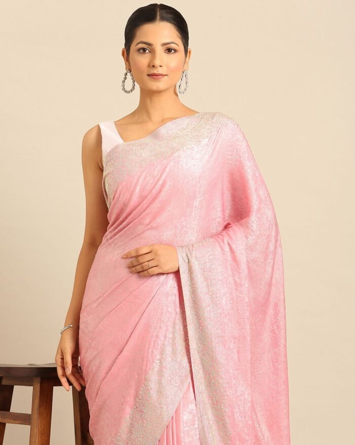 Product Details Product colour may slightly vary due to photographic lighting sources or your monitor settings. Blouse piece length: 0.8 m Party Saree length: 5.5 m Package contains: 1 saree with blouse piece The last image gives a detailed look of the blouse piece that comes with this saree (The blouse in the images is only for styling purpose) Dry clean Satin