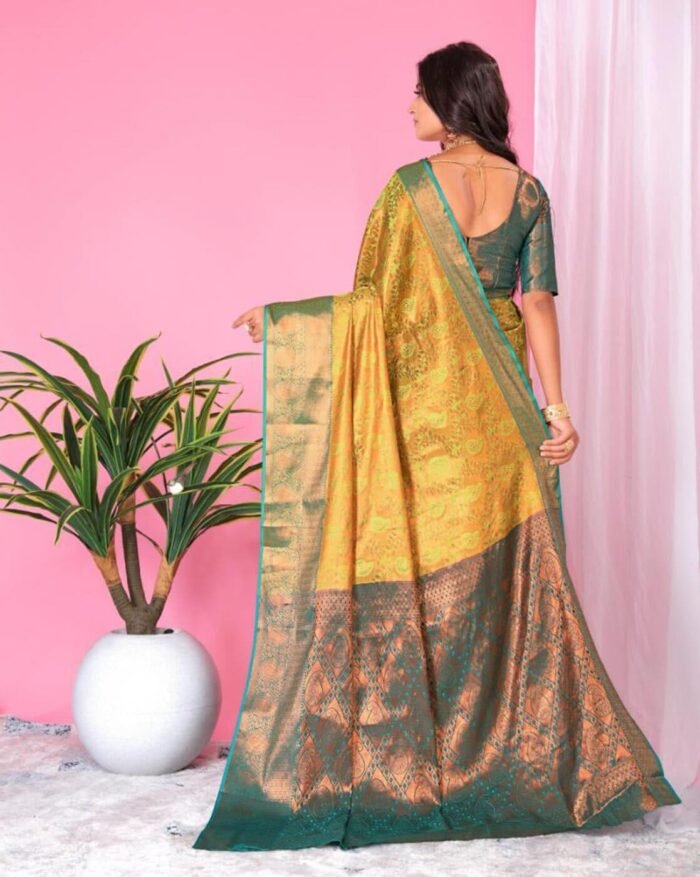 Product Details Color may vary due to photographic effect or screen resolution of your devices We recommend you buy a size larger Blouse piece length: 0.8 m Saree length: 5.5 m Package contains: 1 saree with blouse piece The last image gives a detailed look of the blouse piece that comes with this saree (The blouse in the images is only for styling purpose) Machine wash cold Party Banarasi silk