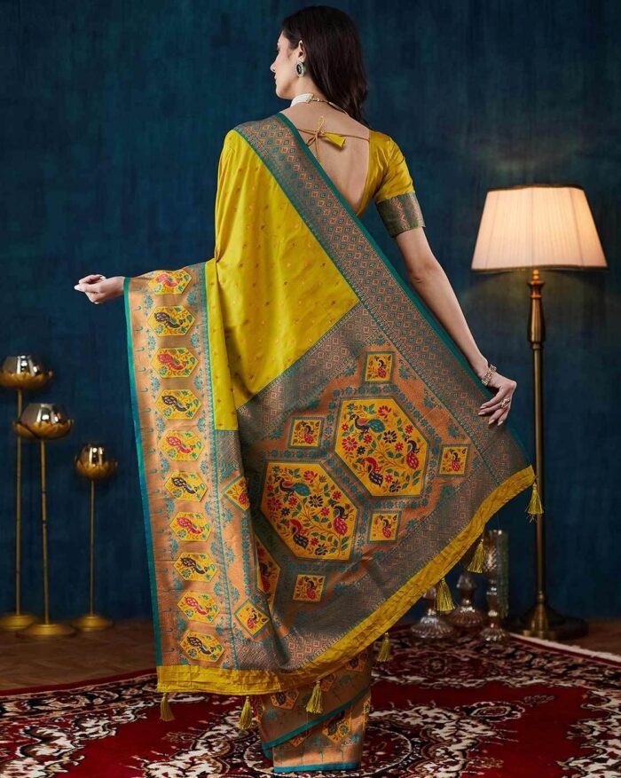 Product Details Silk textile is crafted from the natural protein fiber produced by silkworms during the process of silk production. Known for its luxurious feel, lustrous appearance, and smooth texture, silk has been prized for millennia. This exquisite fabric is used in high-end fashion garments, accessories, home furnishings, and decorative items, reflecting its status as a symbol of elegance and sophistication across cultures worldwide. Elevate your look with this eye-catching ensemble that exudes charm with every drape. This saree promises to make a statement with its bold yet graceful design. Blouse length: 0.8 m Saree length: 5.5 m Package contains: 1 saree with running blouse piece The last image gives a detailed look of the blouse piece that comes with this saree (The model is wearing a blouse from our in-house wardrobe) Machine wash Classic Silk