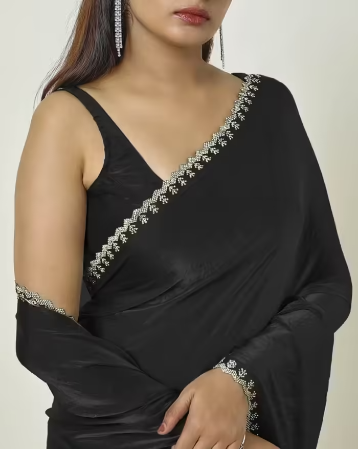 Made To Order Indian Designer Black colour Saree Lehenga Blouse Deep -V Neck Half sleeves blouse for women !! blouse , women blouse